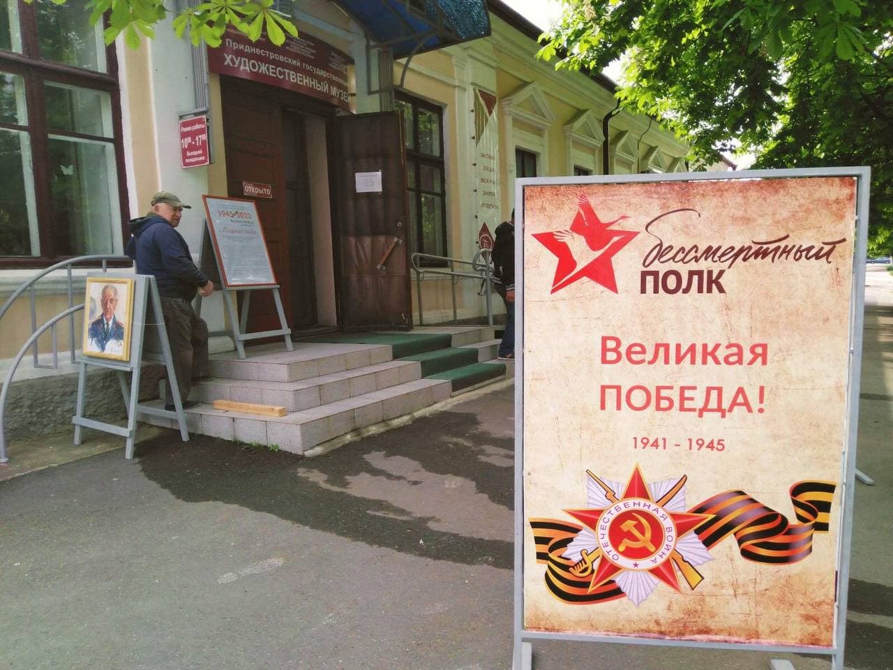 Бендеры, 4 мая. /Новости Приднестровья/. Приднестровский Государственный художественный музей готовится ко Дню Победы. Там появились передвижные баннеры с портретами родственников музейных сотрудников, которые участвовали в Великой Отечественной войны. В экспозиции так называемого антитротуара - репродукции картин, посвящённых Великой Победе.