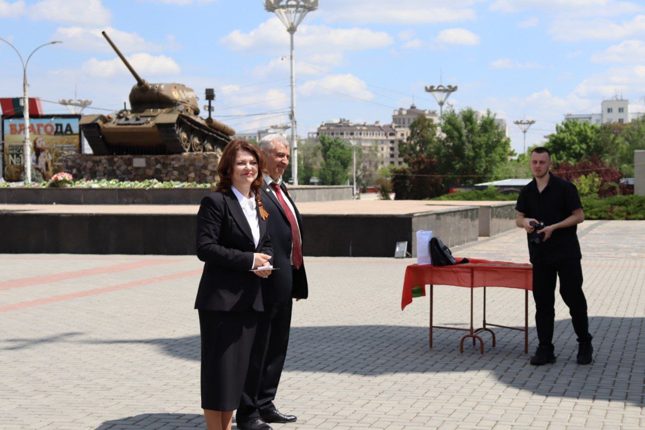 За активную жизненную позицию и вклад в патриотическое воспитание более 70 ветеранов наградили юбилейной медалью «80 лет Победы». Награды вручила глава госадминистрации Тирасполя Илона Тюряева. В завершение участники церемонии возложили цветы к Вечному огню.