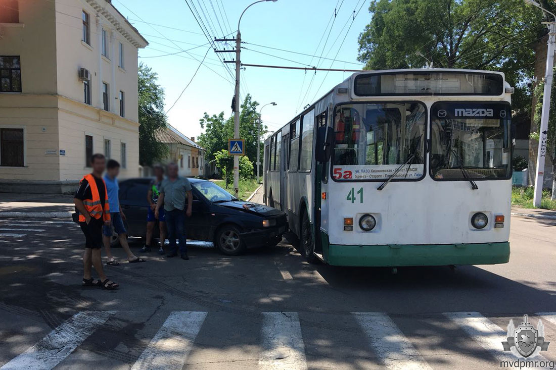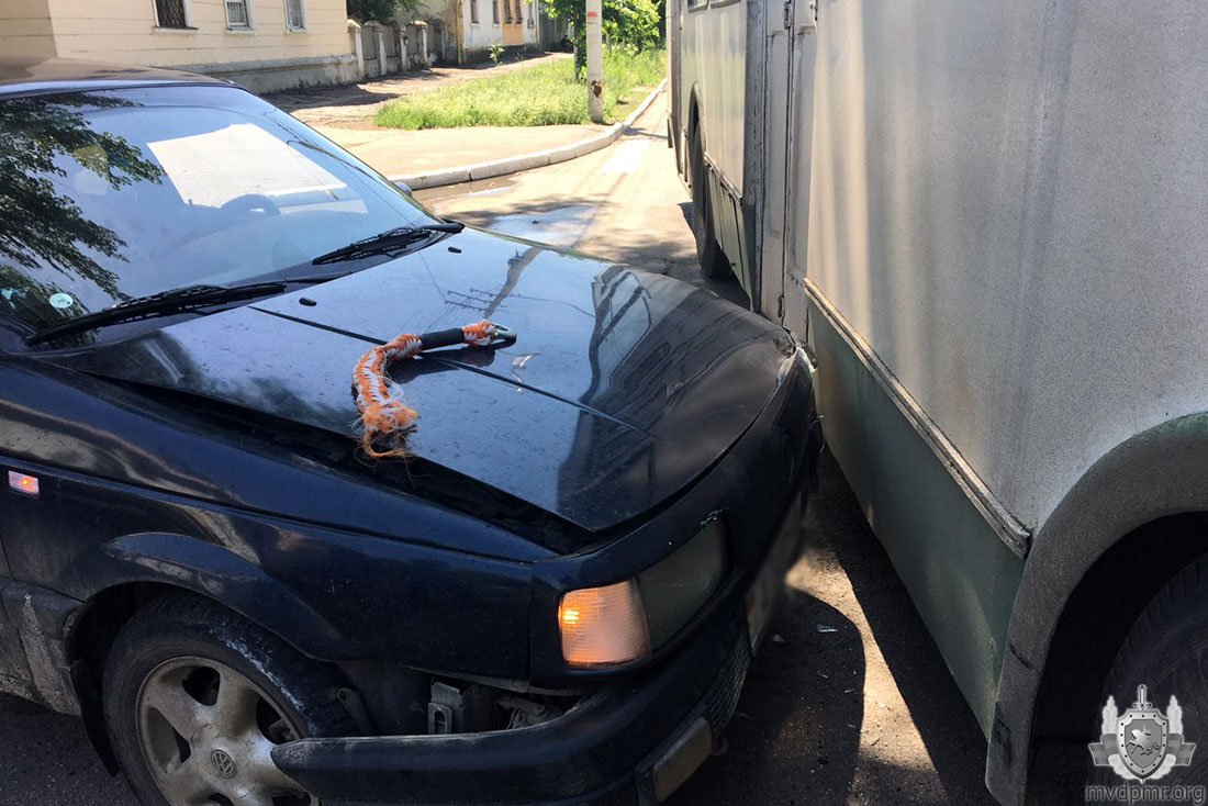 ДТП с участием общественного транспорта произошло в Бендерах на пересечении улиц Суворова и Комсомольской. Водитель Citroen при помощи гибкой сцепки тянул за собой Volkswagen. Подъехав к перекрёстку, он должен был пропустить транспорт с пассажирами, двигавшийся по главной, рассчитывая, видимо, что проскочит. Citroen успел проехать перекрёсток, а вот буксируемое им немецкое авто – нет. Volkswagen врезался в троллейбус. В результате инцидента никто не пострадал.