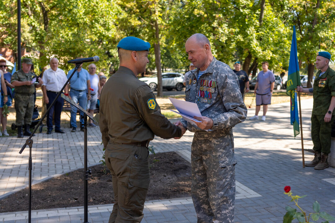 Председатель республиканского Союза десантников Приднестровья Александр Мундрескул поблагодарил ветеранов десантных войск за активную общественную и патриотическую деятельность, подчеркнув особую сплоченность десантного братства. Активистов Союза десантников поощрили почетными грамотами и юбилейными медалями.