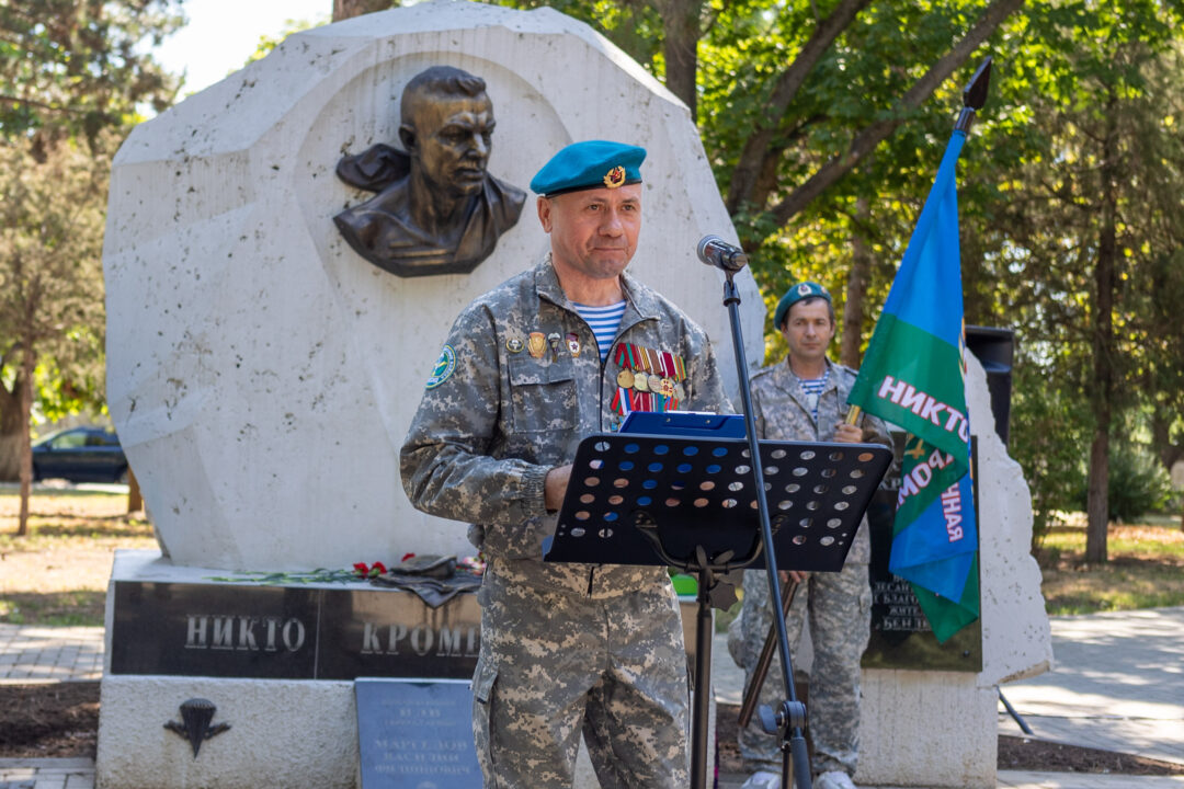 Бендеры, 2 августа. /Новости Приднестровья/. Торжественное мероприятие в честь 95-й годовщины образования Воздушно-десантных войск прошло в Бендерах. У памятника генералу Василию Маргелову собрались десантники разных возрастов.