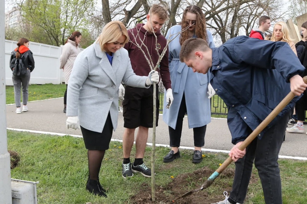 Школьники и студенты вместе с общественниками высадили зелёные насаждения у Мемориала Памяти и Скорби. Там появилась аллея белых гибискусов.