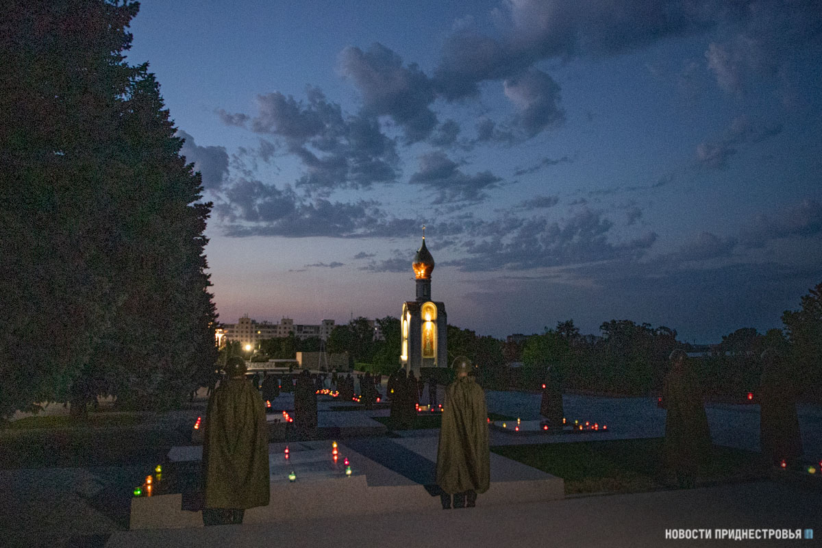 Вечный огонь, сотни лампадок и военнослужащие в исторической форме