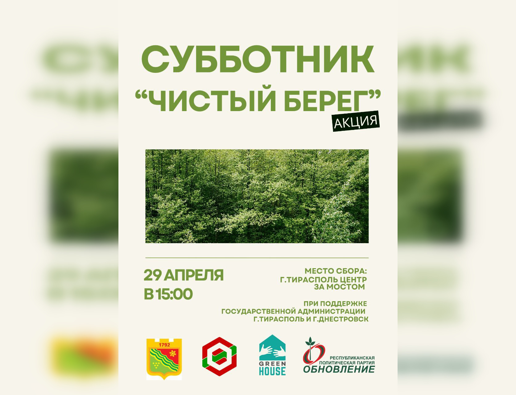 Тирасполь, 28 апреля. /Новости Приднестровья/. Активисты и волонтеры приглашают всех желающих присоединиться к акции «Чистый берег». Она пройдет 29 апреля в 15:00 за мостом через Днестр в центре Тирасполя.