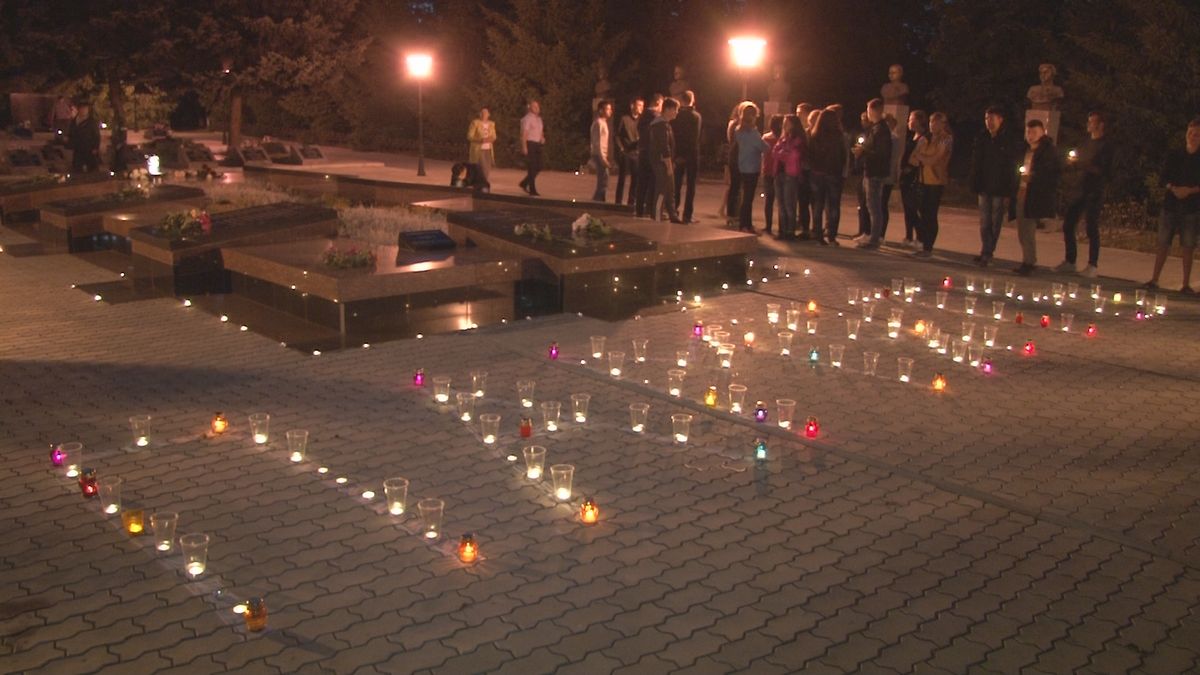На городском Мемориале Славы была зажжена 81 свеча – именно столько советских воинов покоятся здесь в братской могиле