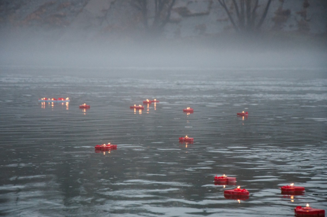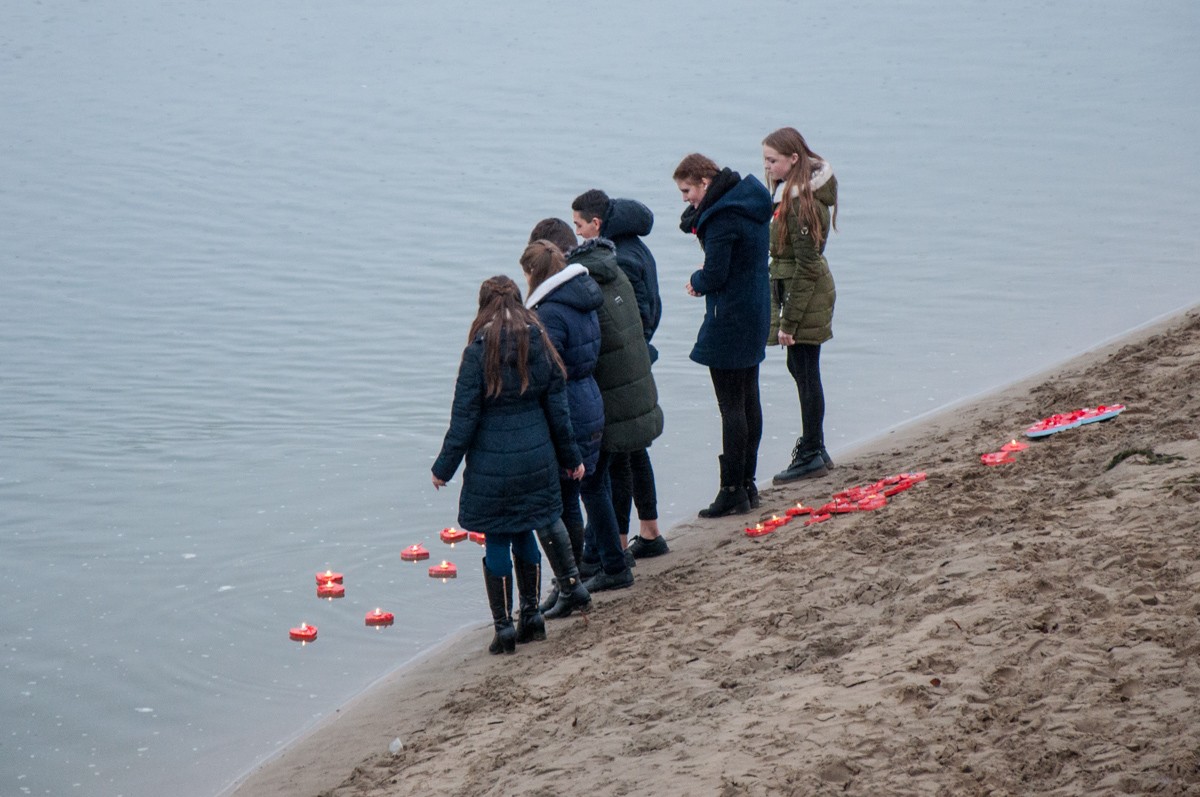 Молодые люди самостоятельно изготовили 30 декоративных сердец из пенопласта, куда вставили свечи. Зажигали их и опускали в реку в знак того, что приобщаются к общей скорби.
