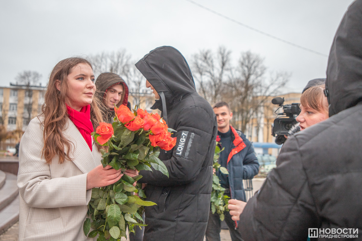 Цветы и открытки тираспольчанкам дарили активисты молодёжного крыла партии совместно с курсантами ТЮИ. Такой неожиданный сюрприз порадовал всех представительниц прекрасного пола. Они благодарили и взамен дарили свои улыбки.