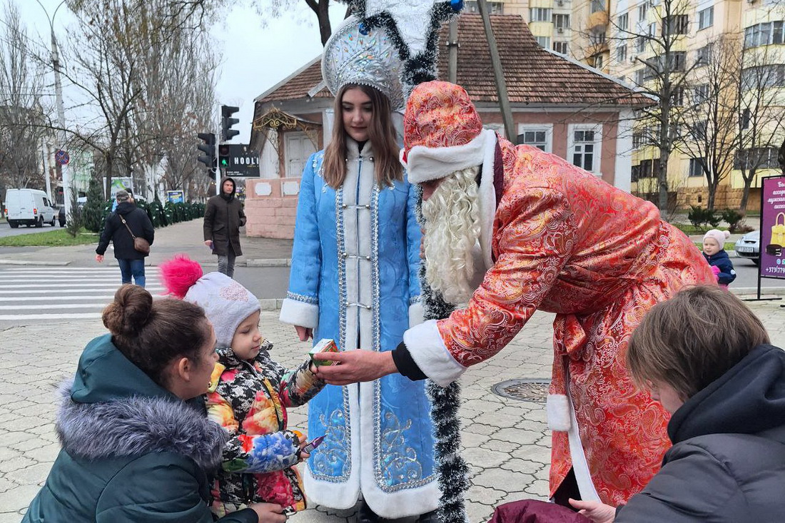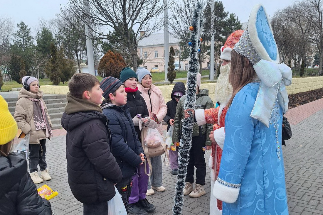 Тирасполь, 31 декабря. /Новости Приднестровья/. Молодёжное движение «Звезда» провело предновогоднюю акцию. Переодевшись в Деда Мороза и Снегурочку, активисты вышли на улицы Тирасполя, чтобы поздравить юных жителей с наступающими праздниками.