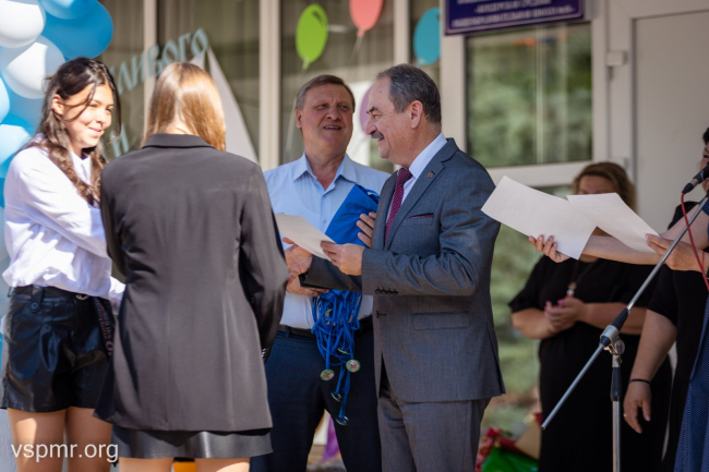 «Учебный год был непростым для каждого из вас. Но вы заслужили большие летние каникулы. Уверен, что вся школьная программа: задачи по математике и физике, правила русского языка, приднестровская история и мировая литература – покорилась вам благодаря трудолюбию и желанию учиться. Дорогие выпускники, вы наша опора и надежда. Крепитесь, скоро государственные экзамены. И помните: Приднестровье – это вы. Вы – будущее нашего молодого государства», - сказал председатель Верховного Совета ПМР, депутат по избирательному округу № 1 "Солнечный" Александр Коршунов.