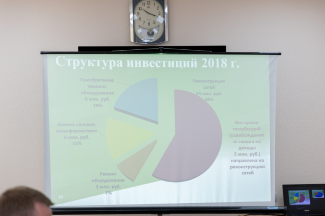В текущем году в инвестпрограмму заложено более 60 млн рублей. Более 40% средств пойдут на реконструкцию электросетей, 25% - на ремонт трансформаторных подстанций, 15% - на замену силовых трансформаторов.