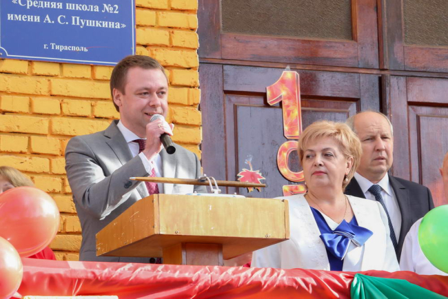 Александр Мартынов посетил торжественную линейку в Тираспольской школе №2