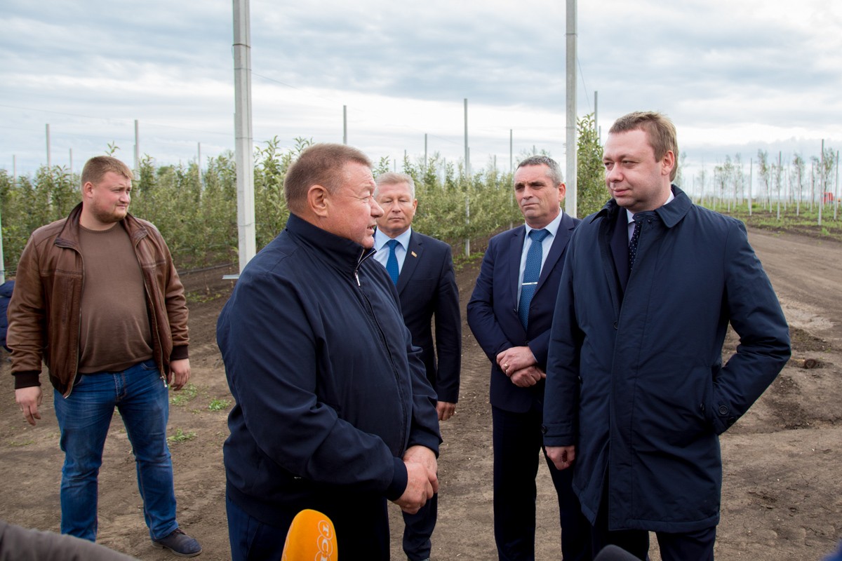 Суперинтенсивный яблоневый сад, который григориопольская фирма «Агро Компакт» заложила в мае, уже дал первый урожай. С технологией выращивания ознакомился премьер