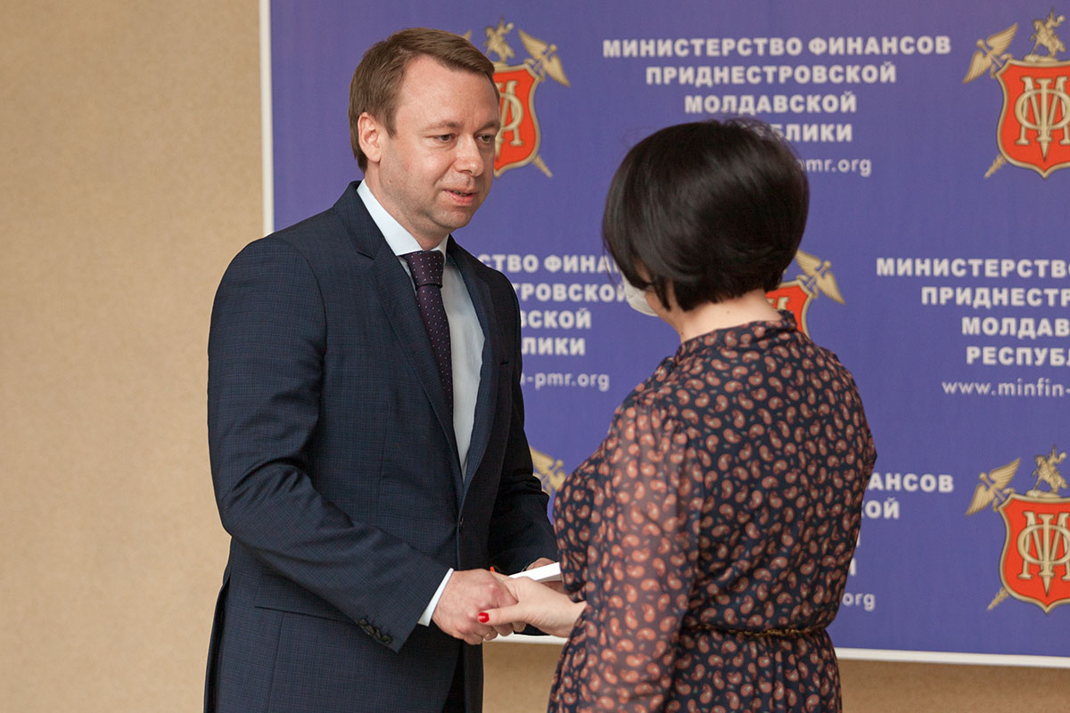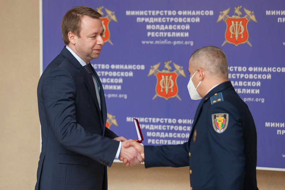 Продолжила торжественное собрание церемония награждения государственными наградами. Из рук председателя Правительства за многолетний добросовестный труд, высокий профессионализм сотрудники Минфина получили орден «Трудовая Слава» и медаль «За трудовую доблесть». Также указом Президента присвоено почетное звание «Заслуженный работник ПМР» начальнику налоговой инспекции по городу Бендеры.
