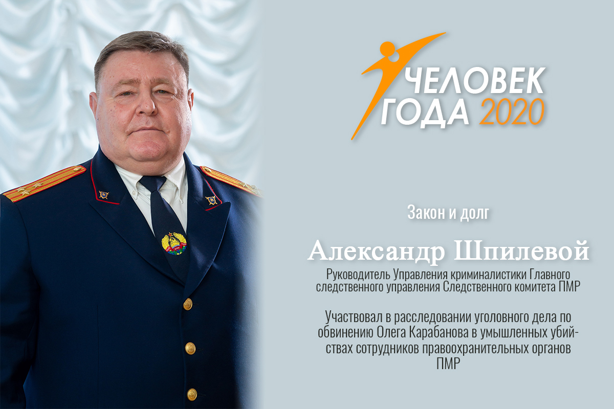 Тирасполь, 28 февраля. /Новости Приднестровья/. На церемонии «Человек года – 2020» премия в номинации «Закон и долг» присуждена полковнику юстиции, руководителю Управления криминалистики Главного следственного управления Следственного комитета ПМР Александру Шпилевому.