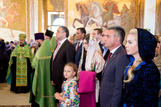 Глава государства возложил цветы к бюсту Александру Невскому и посетил вместе с горожанами и представителями органов госвласти церковную службу в храме на территории крепости. Затем Президента ознакомили с различными локациями, которые были открыты для гостей крепости.