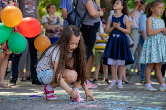 с 9:00 до 15:00 Конкурс рисунка на асфальте «Мир глазами детей», работа тематических фотозон, выставки декоративно-прикладного творчества