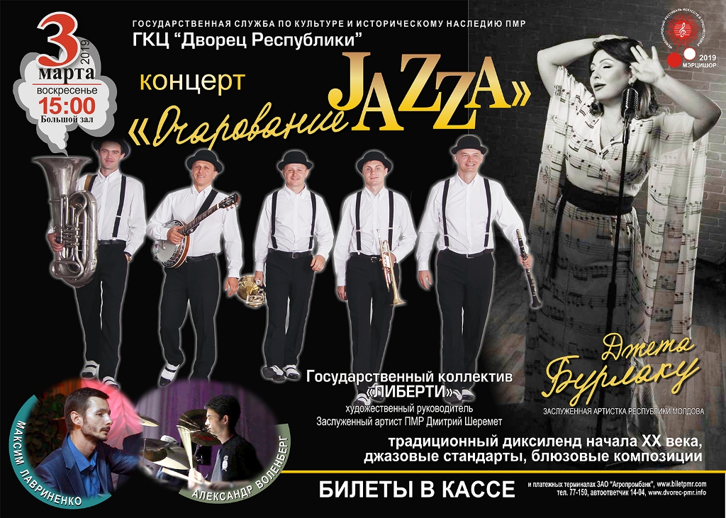 15:00 Концерт государственного коллектива «Liberty» и заслуженной артистки РМ Джеты Бурлаку «Очарование джаза»