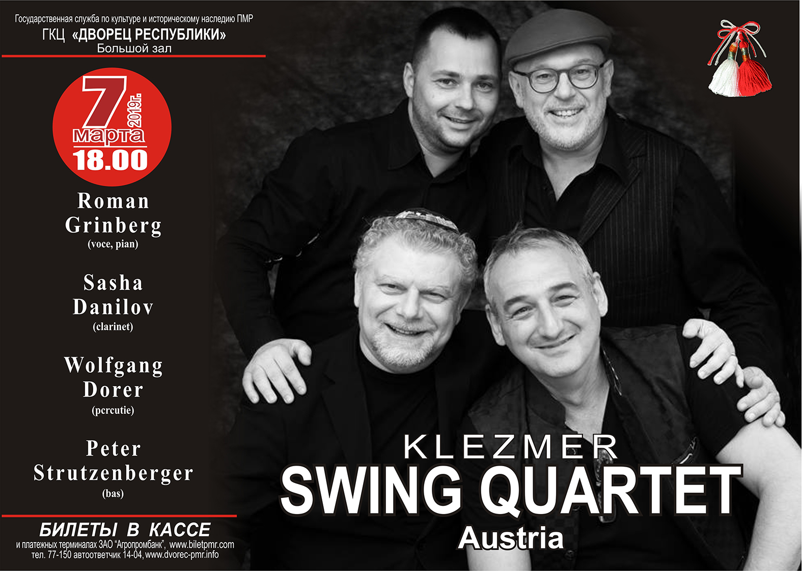 18:00 Концерт коллектива «Роман Гринберг Band» - «Klezmer Swing Quartet» (г. Вена, Австрия)