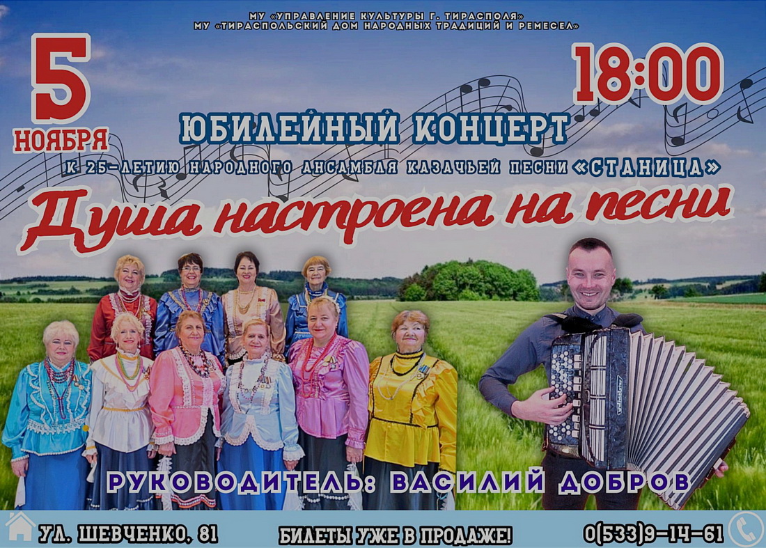 Тирасполь, 4 ноября. /Новости Приднестровья/. Народный ансамбль казачьей песни «Станица» отметит своё 25-летие концертом в Тираспольском доме народных традиций и ремёсел.