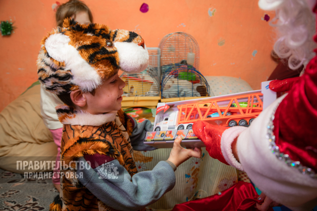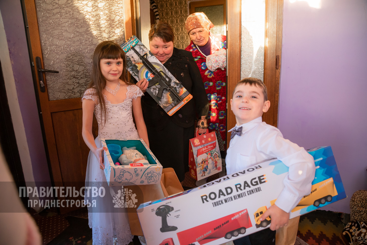 Новогодний экипаж высшего органа исполнительной власти отправился по районам республики и поздравил детей из пяти семей. Две из них проживают в Рыбницком районе.