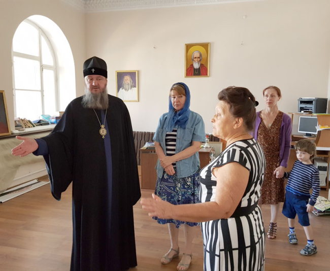 Архиепископ осмотрел помещения, где после начала нового учебного года возобновятся занятия в различных кружках, студиях и в воскресной школе, расспросил об имеющихся проблемах и пообещал помочь в решении некоторых из них.