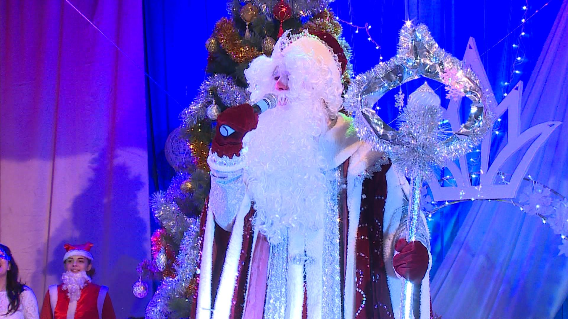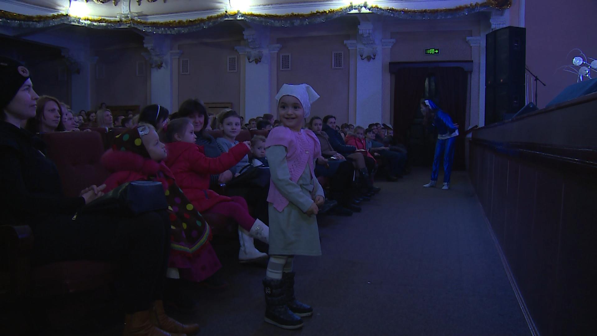 Затем для всех присутствующих на сцене разыграли театрализованное представление. Новогодняя тематика развеселила ребят. Артисты ГДК показали сказку, в которой победило добро.