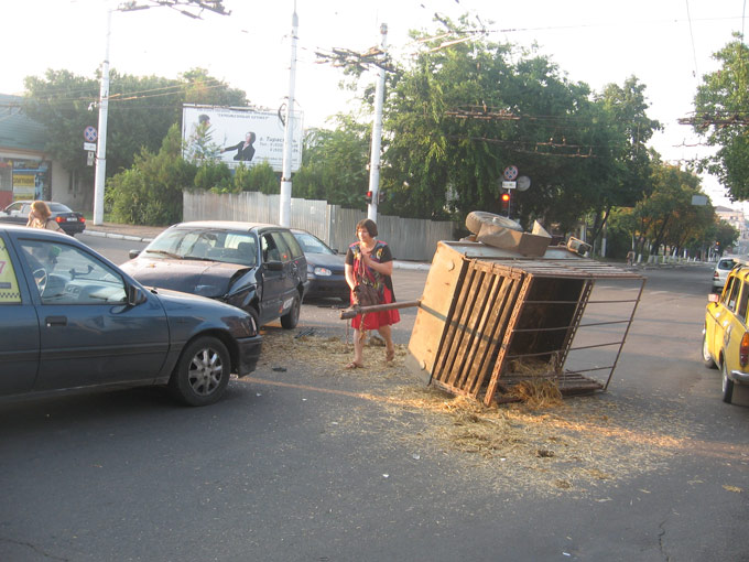1 августа ранним утром в столице, на перекрестке улиц Шевченко и Карла Либкнехта, она проигнорировала дорожный знак «Движение без остановки запрещено» и столкнулась с автомобилем «Фольксваген Гольф». В результате самодельный прицеп автоледи опрокинулся, а её автомобиль столкнулся еще раз, но уже с «Опелем».