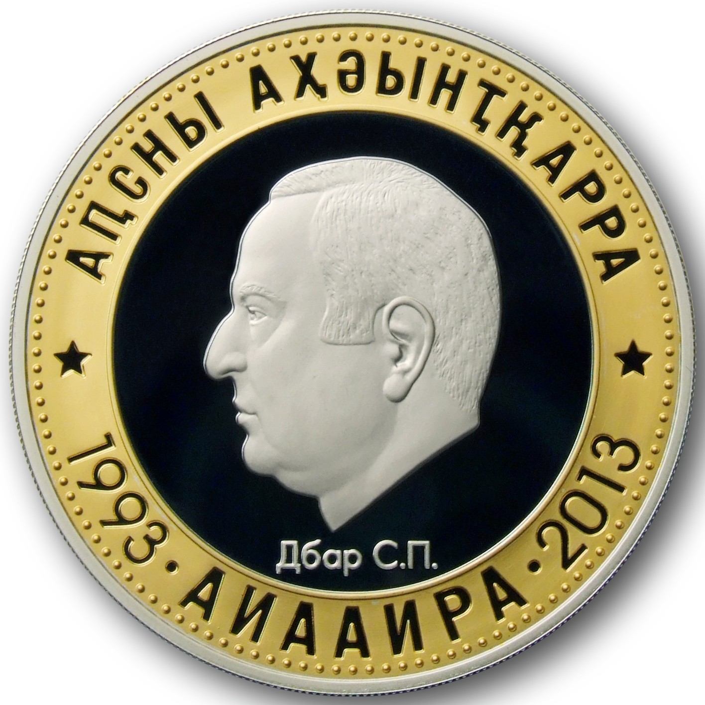 16 Сен.., 2013, 12:52В честь 20-летия Победы в Отечественной войне народа Абхазии 1992−1993 гг. Банк Абхазии выпустил в обращение монеты из драгоценных металлов