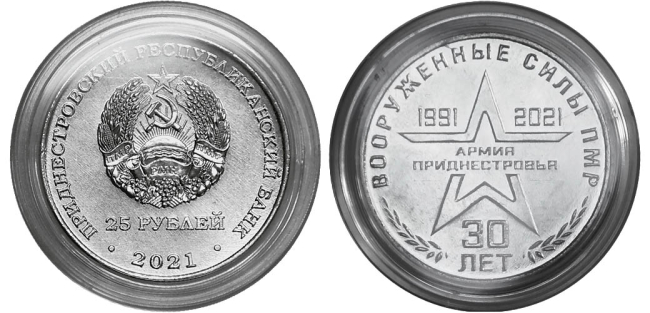 Тирасполь, 25 августа. /Новости Приднестровья/. С 25 августа Банк Приднестровья ввёл в обращение памятные монеты «30 лет Вооружённым силам ПМР» из серии «Государственность Приднестровья».