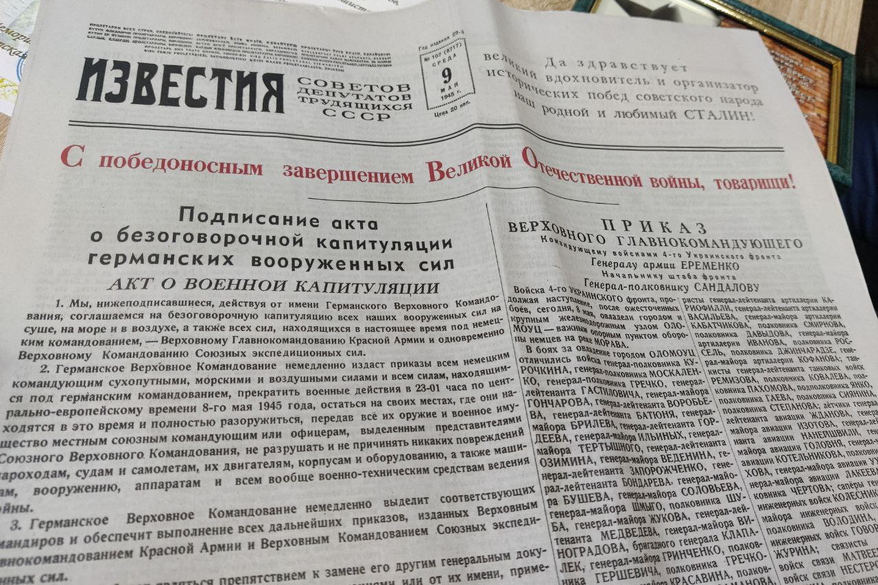 Также музею передана копия газеты «Известия» от 9 мая 1945 года.