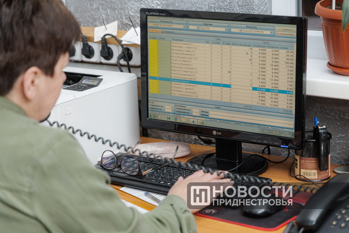 У Натальи Чукавиной – другой сотрудницы «Бендерского хлеба» - утро начинается со звонков клиентов. В её основные задачи входит работа с покупателями: женщина принимает заявки, отправляет, корректирует их, отдаёт заказы на производство в цех.