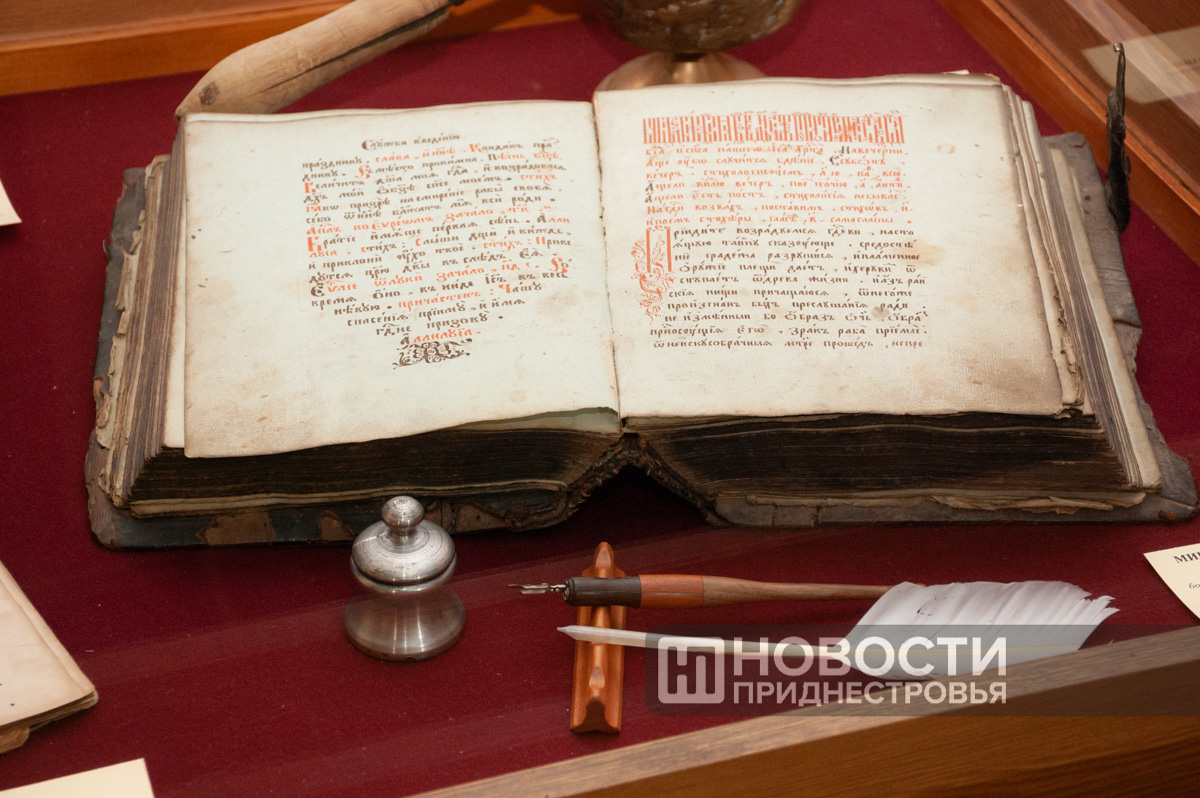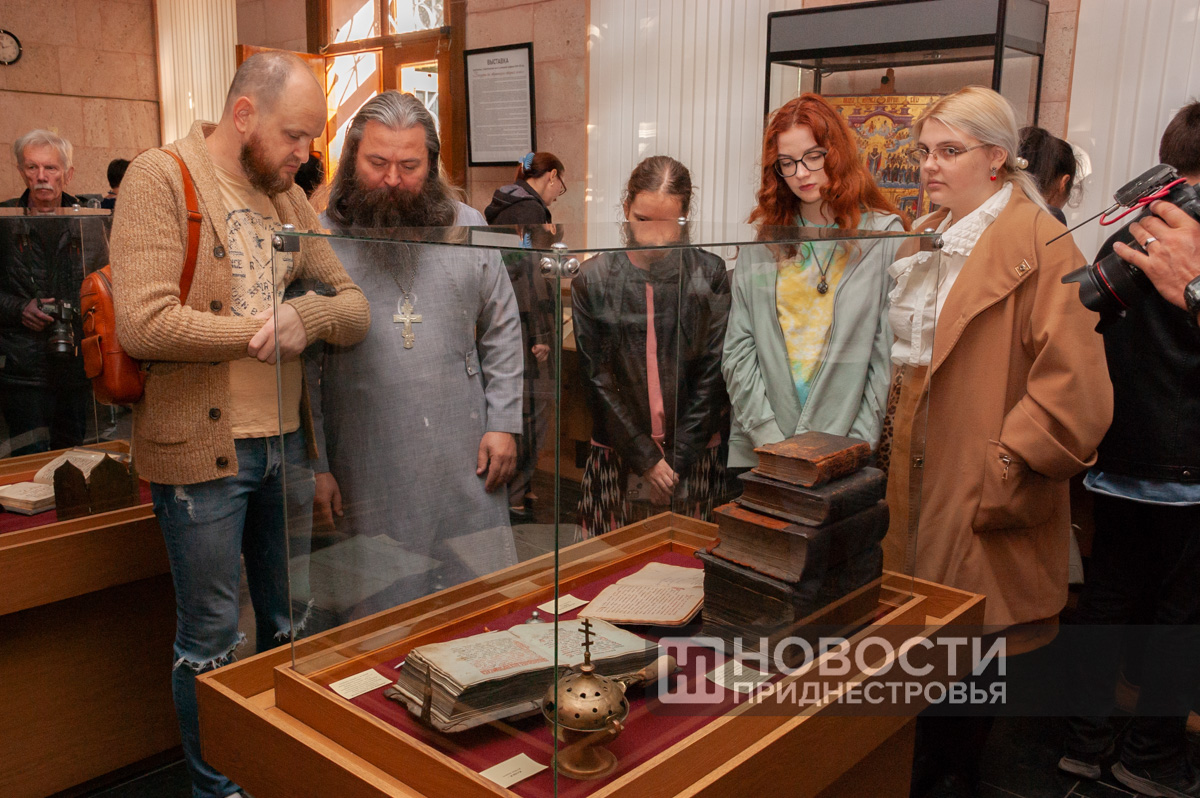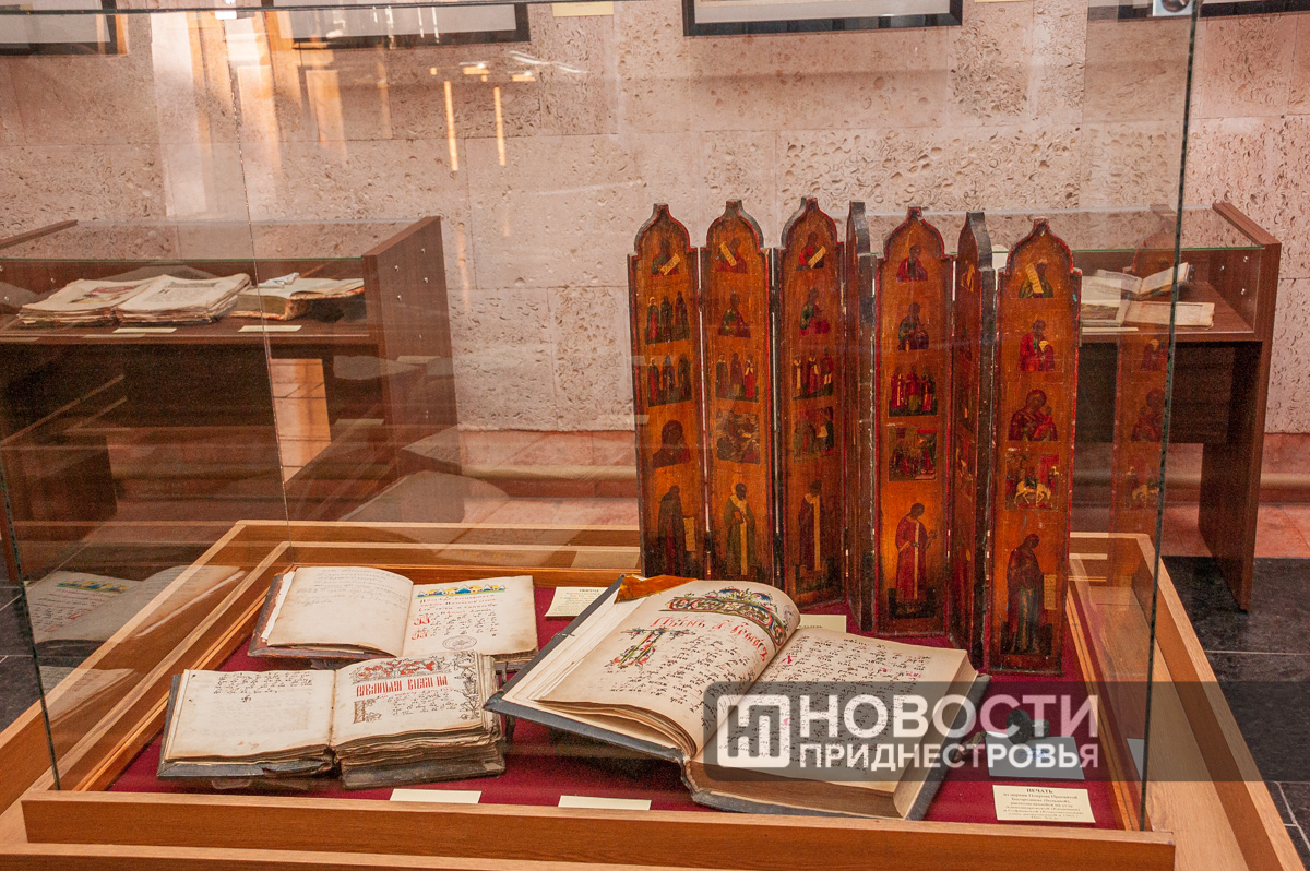 Выставка «Бендеры на страницах старых книг» совместная – часть экспонатов предоставил Культурно-просветительский центр-музей «Древнерусская книжница» при Покровской старообрядческой общине города Бендеры. Самая старая книга из представленных на экспозиции принадлежала когда-то первому епископу большой Бессарабской старообрядческой епархии, центром которой были Бендеры, и была издана на Московском печатном дворе в первой половине XVII века. Самая новая датируется серединой XX столетия. На выставке представлено много синодиков – поминальных списков бендерских мещан.