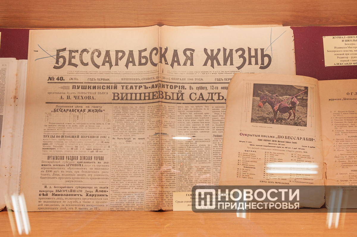 «Пожалуй, самая большая изюминка: здесь представлен журнал "Школьные экскурсии и школьный музей", который издавался мастерской учебных пособий Бендерского земства, ставшей прародителем нашего музея. То есть фактически это первое издание нашего музея. Главным редактором журнала был первый главный хранитель нашего музея», - обратил внимание гостей выставки Александр Тихонов.