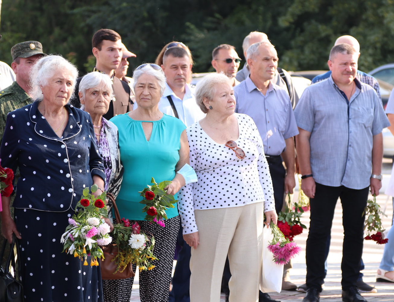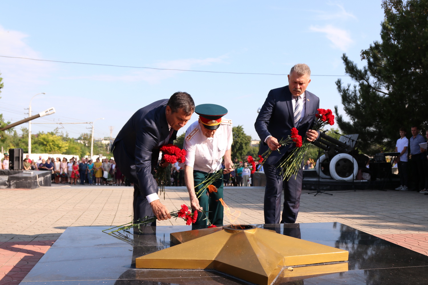 В память о погибших героях была объявлена минута молчания, к подножию обелиска, Вечному огню и на гранитные плиты легли живые цветы.