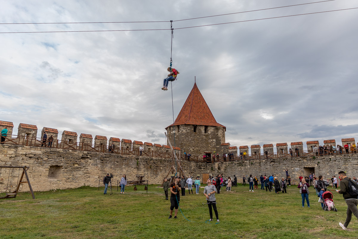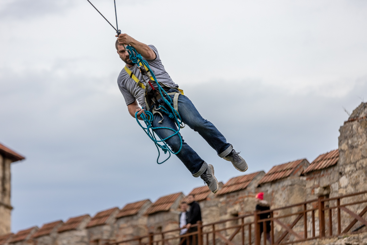 Проходили различные мероприятия и в цитадели крепости. Любители экстрима смогли даже полетать. Зиплайн – экстремальный спуск, во время которого человек несётся по стальному канату под воздействием гравитации, набирая большую скорость. По словам организаторов, от желающих прокатиться не было отбоя. Люди становились в очередь за полётом.