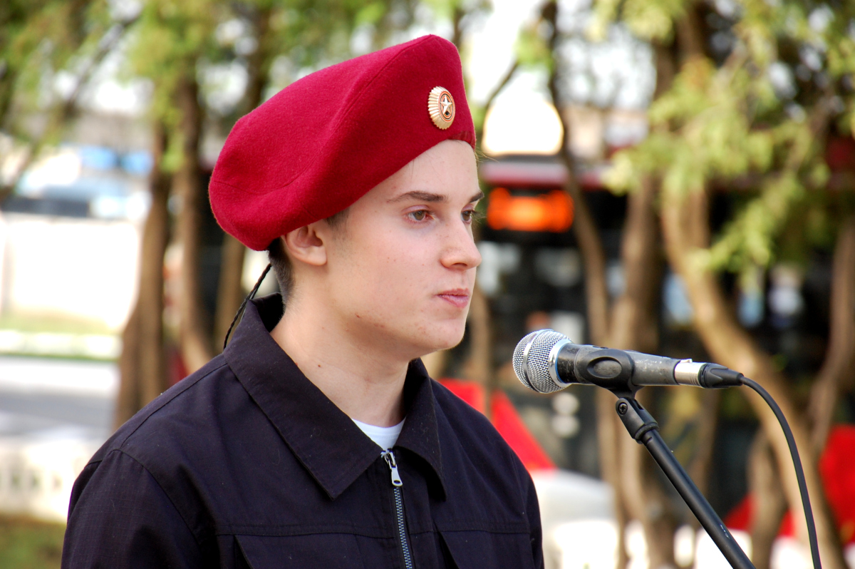Выступая от имени Республиканского детско-юношеского и молодежного общественного движения «Юный патриот Приднестровья», ученик 11-го класса бендерской средней школы № 15 Максим Байдан сказал: