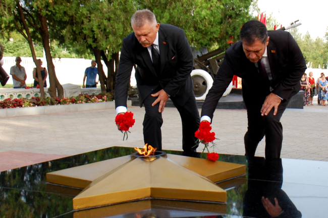Участники митинга возложили цветы к Вечному огню и братским могилам воинов, павших при освобождении города.
