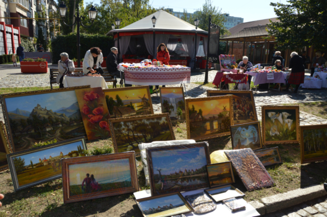А разгуляться в этот день было где: уже в 10 утра начался праздничный концерт, в ходе которого своим творчеством делились и радовали артисты приднестровских творческих коллективов. Работал целый ряд тематических локаций, посетив которые, все желающие могли принять участие в мастер-классах, ознакомиться с выставками декоративно-прикладного искусства, купив понравившееся изделие. Так, Бендерский торгово-технологический техникум представил выставку тортов и пирожных, изготовленных специально ко Дню города.