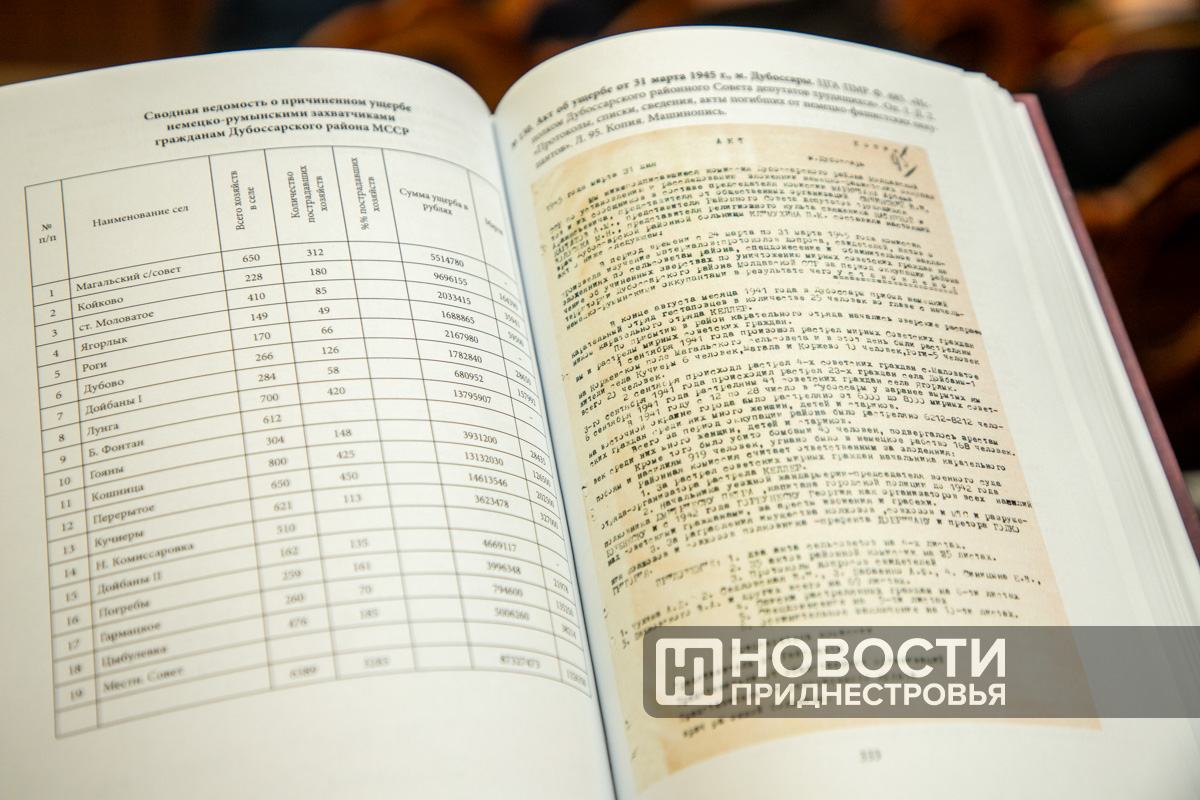 «Доклады и записки об итогах работы по причинённому ущербу, реестры предприятий и колхозов, пострадавших во время оккупации, списки угнанных на принудительные работы, опросные листы возвратившихся на родину из немецкого плена, заявления граждан об ущербе, письма о поиске родных, оставшихся на временно оккупированной территории. Протоколы допросов свидетелей, заявления жителей, бытовые зарисовки из жизни горожан и сельчан в период оккупации. Все эти документы несут на себе печать личных переживаний от увиденного и перенесённых унижений, страданий и издевательств», – подчеркнула начальник Государственной службы управления документацией и архивами ПМР Зинаида Тодорашко.
