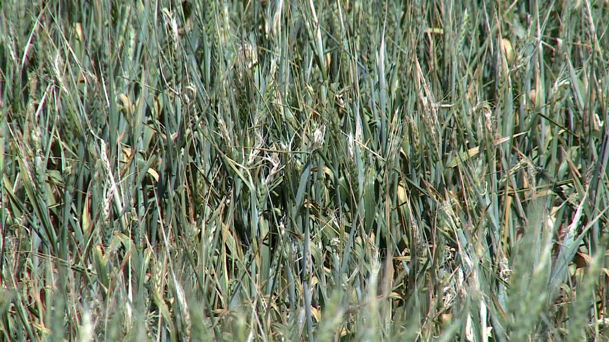 «У озимой пшеницы ещё месяц вегетации, она должна накапливать полезные вещества, чтобы налился колос. Вот, смотрите, верхняя часть колоса уже сгорела, нижняя пока заканчивает цветение, но тут одна шелуха, ничего нет. Без влаги колос так и останется пустым», – показывает управляющий фирмой «Экспедиция Агро» Константин Чебручан.
