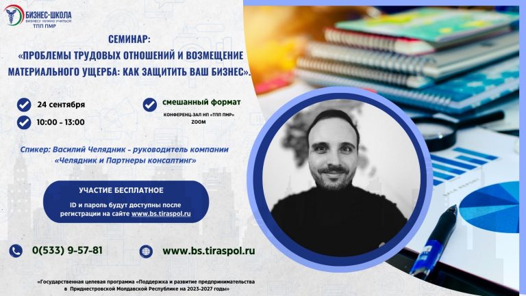 Семинар пройдёт 24 сентября с 10:00 до 13:00 в очном (в конференц-зале ТПП ПМР) и дистанционном (ZOOM-конференция) форматах.