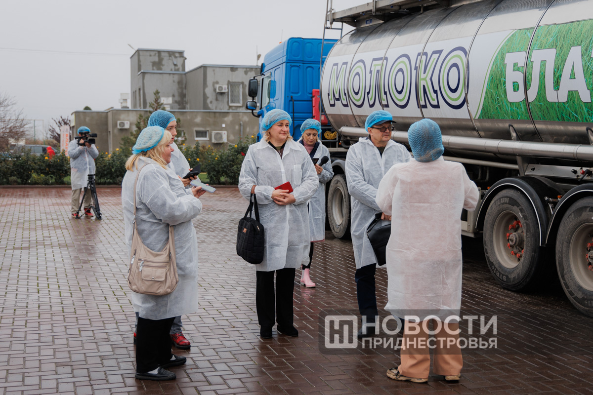 После мясного комбината комиссия посетила молочное производство, куда ежедневно поступает молоко с собственной фермы в Рыбницком районе.