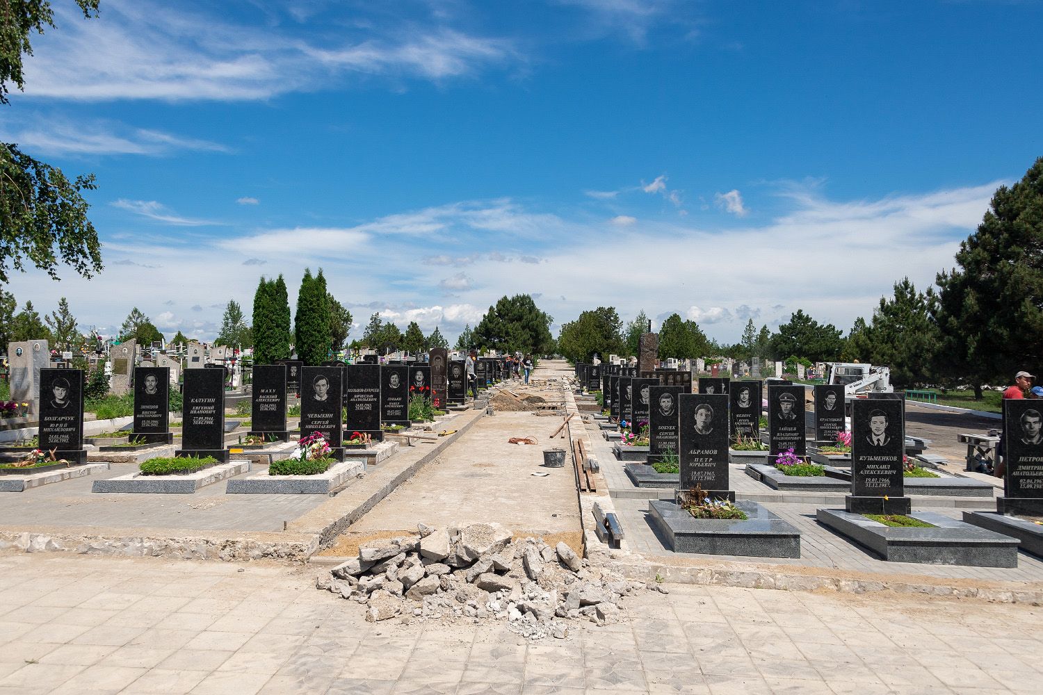 Бендеры, 22 мая. /Новости Приднестровья/. Работы по благоустройству Аллеи Героев на Борисовском кладбище должны завершиться к 19 июня – Дню памяти и скорби по погибшим в Бендерах в 1992 году.