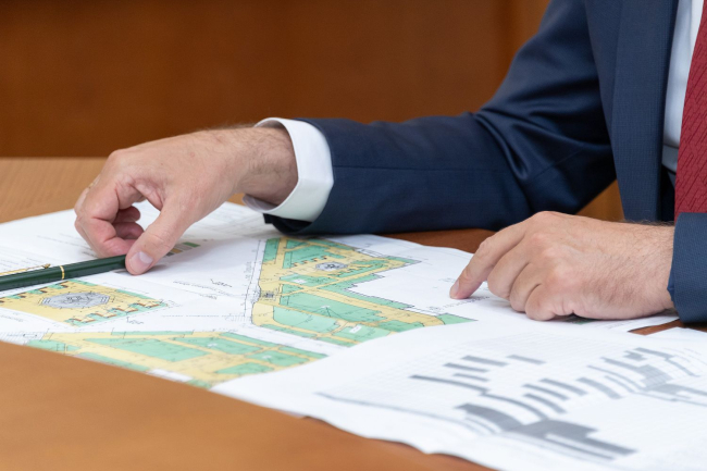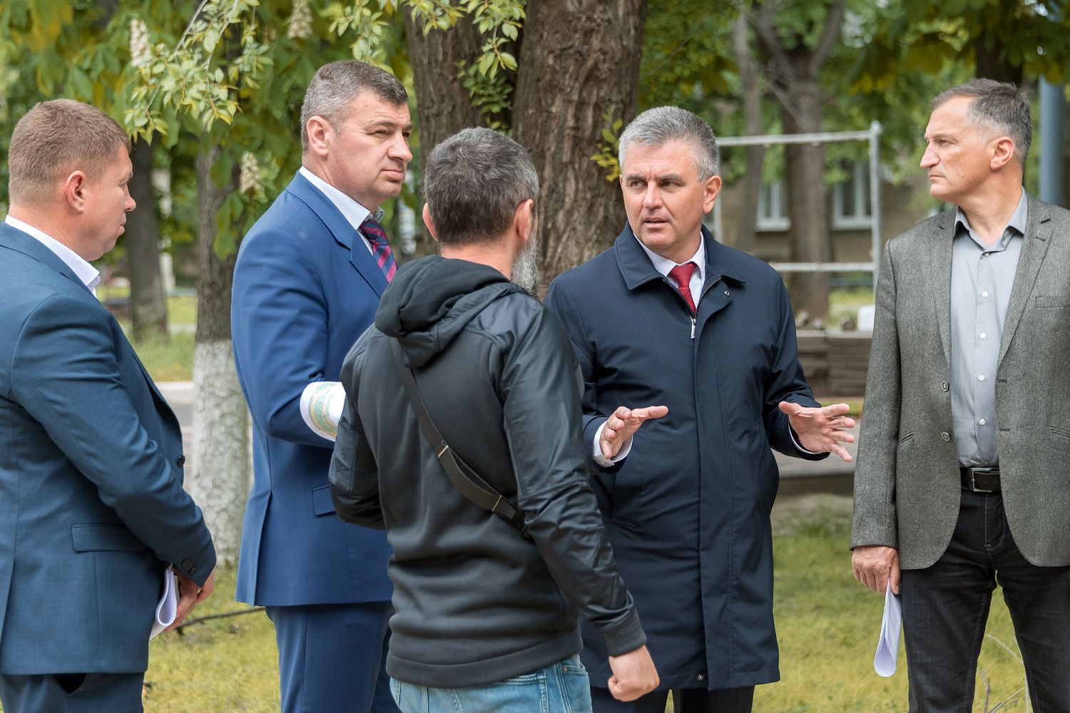 После завершения работы с проектной документацией и графиками проведения работ совещание продолжилось в выездном формате. Инспекционная группа во главе с Президентом побывала на различных точках. Подрядчики рассказали о тонкостях будущего оформления университетских корпусов. Говорили о планах по дальнейшему озеленению и благоустройству территорий. Вадим Красносельский подчеркнул, что сочетание эстетики и функциональности должно быть оптимальным. Уже заказано порядка сотни скамеек. Продумано уличное освещение, в том числе в зоне Wi-Fi. Она будет обустроена для учащихся в новом сквере, центральным элементом которого станет статуя, символизирующая студенчество. Преобразится также сектор, где установлен памятник Т. Г. Шевченко, чье имя носит приднестровский вуз. Немного изменится и облик памятника: постамент сделают более облегченным и изящным.