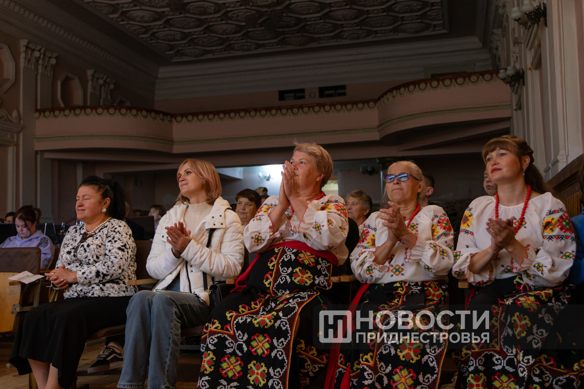 Пока в фойе желающие наслаждались культурными особенностями приднестровского края, на сцене развернулась концертная программа. Народный ансамбль русских народных инструментов «Черёмушка» из Первомайска в этот день выступал первым. Артисты коллектива исполнили русскую народную песню «Выйду на улицу».