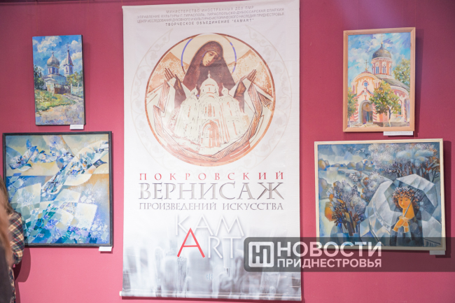 Выставка «XVI Покровский вернисаж» представлена творческим объединением KAMART и посвящена Дню города Тирасполь, 25-летнему юбилею Тираспольско-Дубоссарской епархии и празднику Покрова Пресвятой Богородицы.