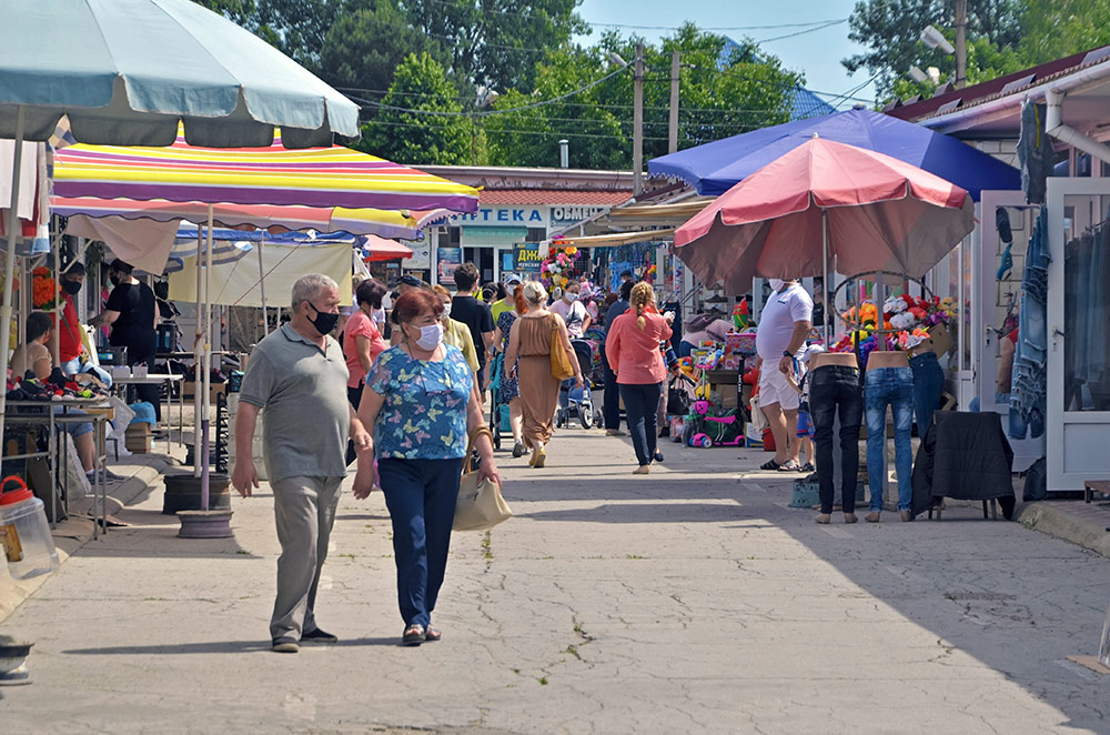 Дубоссары, 9 июня. /Новости Приднестровья/. Дубоссарский городской рынок возобновил торговлю промышленными товарами. Более сотни дубоссарских предпринимателей, реализующих продукцию в торговых рядах, вернулись к своей работе. На входе всем посетителям измеряют температуру и обрабатывают руки дезинфектором. Ещё одно обязательное условие как для посетителей, так и для продавцов - ношение маски.