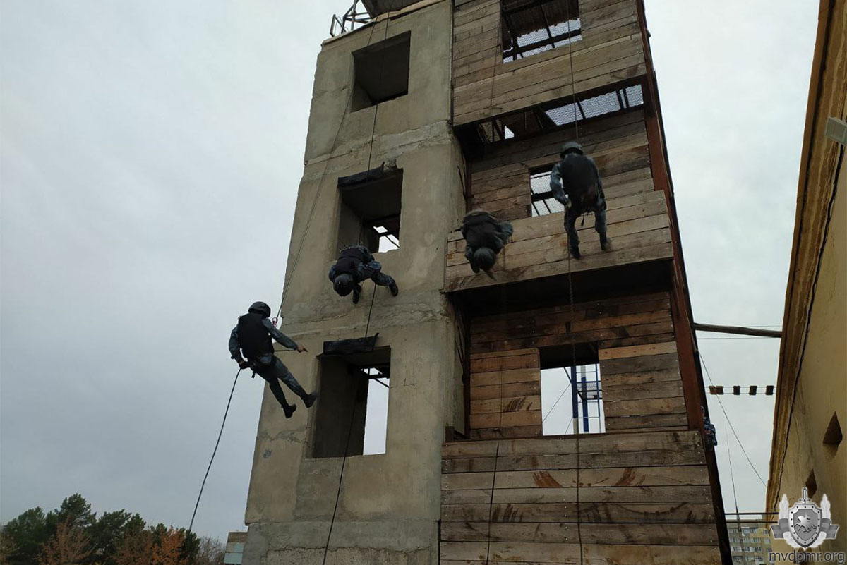 Первое задание – преодоление огненно-штурмовой полосы. Далее огневая и высотная подготовка – совершенствование меткости стрельбы из автомата Калашникова в тире СОБР «Днестр» и упражнения с использованием альпинистского снаряжения на специализированном строении. В завершение – проверка физической подготовки.