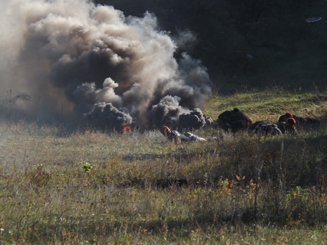 Затем военнослужащие проползли по-пластунски по карьеру под огнём противника, выполнили подъем на гору и спуск с неё. Завершили тяжёлый маршрут контрольные стрельбы из автомата Калашникова.
