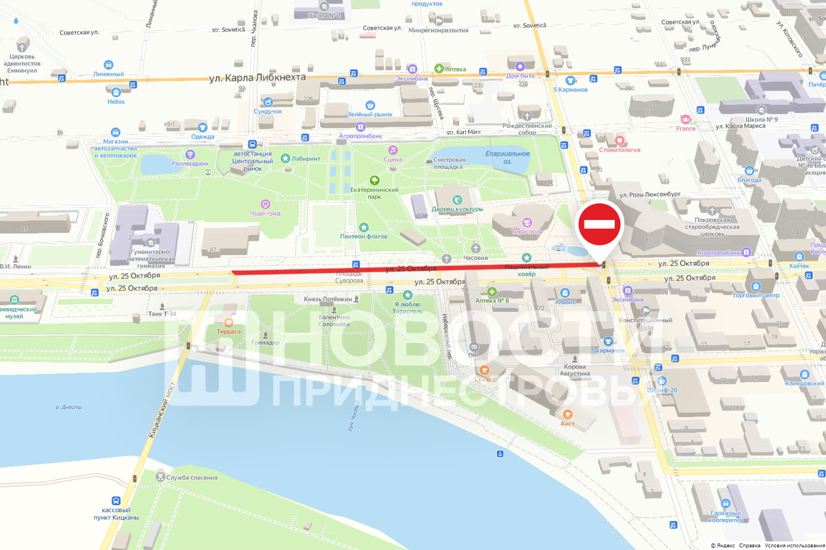 В связи с этим движение по нечётной стороне улицы 25 Октября, от кинотеатра «Тирасполь» до Дворца детско-юношеского творчества, с 18:00 до 19:30 будет перекрыто, сообщили в пресс-центре МВД ПМР.